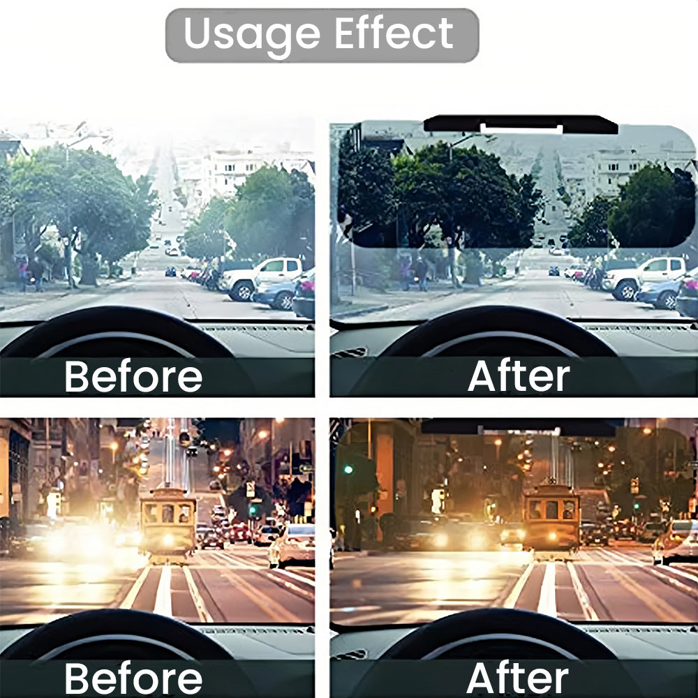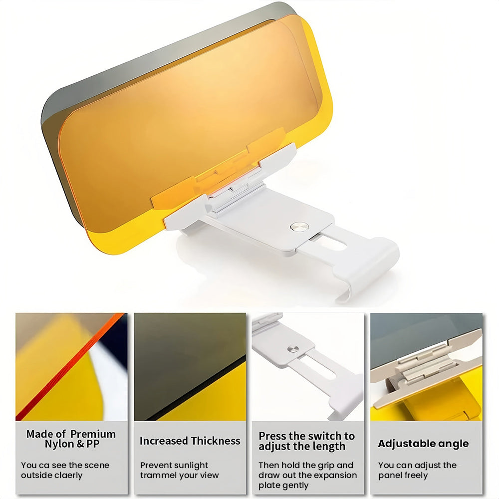 • 🚘Dual Purpose - This product is the best sun visor for car drivers that hits the road day and night. It is designed for 2 purposes. The gray part of the car visor is fitting for day driving that filters 90% of UV rays. The yellow side blocks the car beam lights at night eliminating eye fatigue.