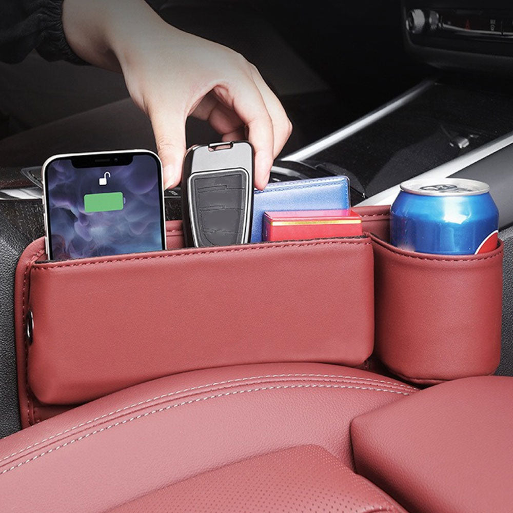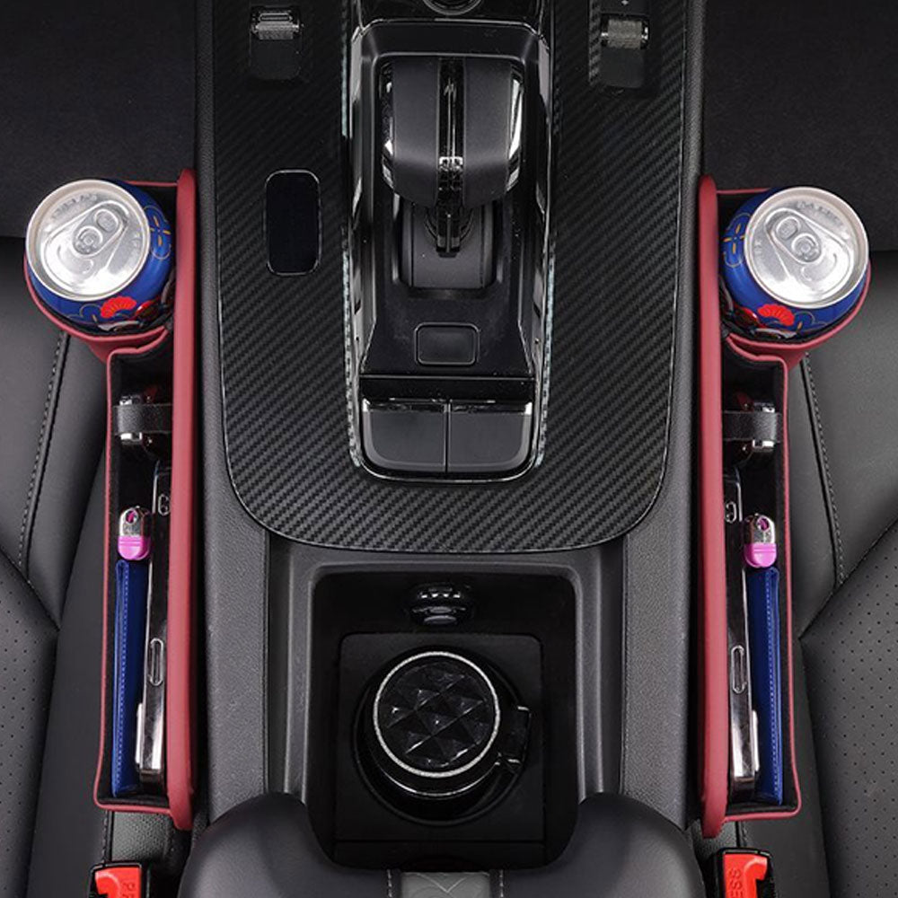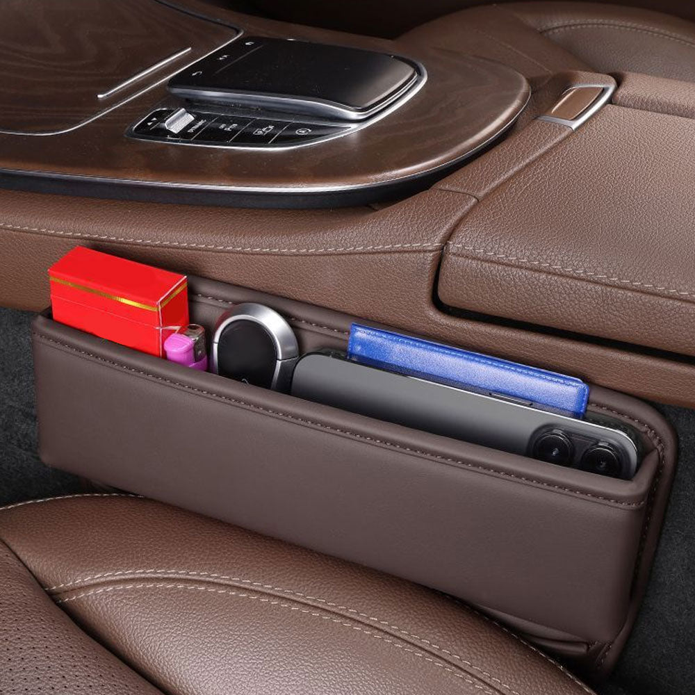 - 2-IN-1 FUNCTION. Car seat gap storage box + leak-proof plug. The car seat gap filler organizer not only expands the car space, keeps your pocket necessaries organized, but also can be used as car seat gap filler, prevents your phone and other items from falling when you driving.
