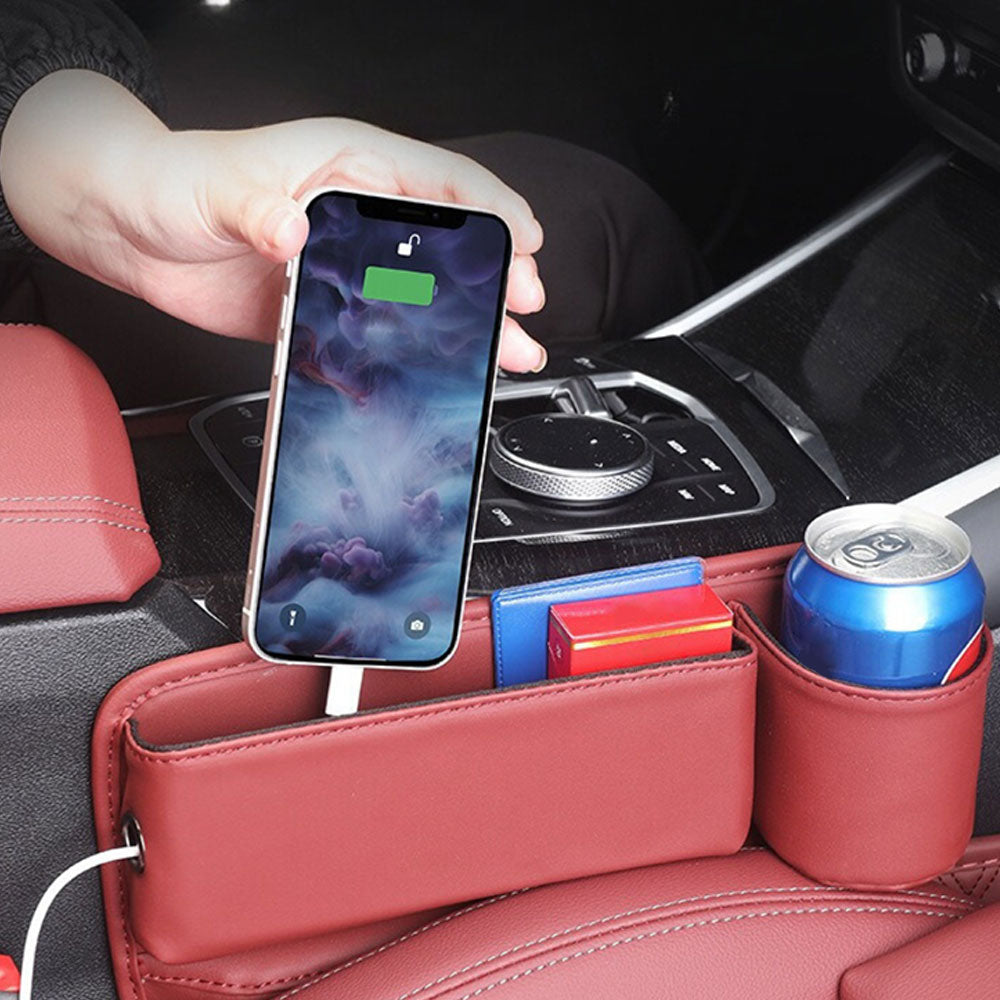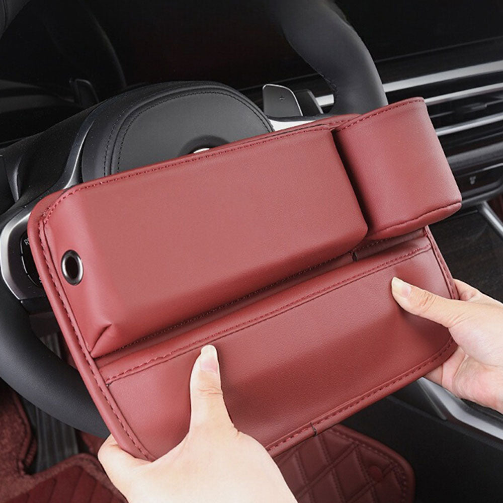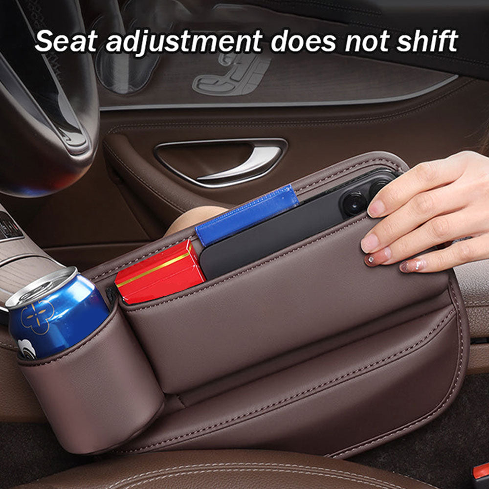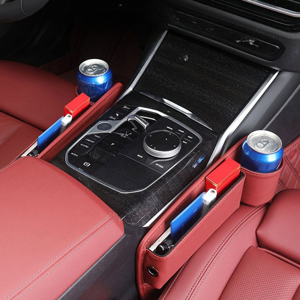 - 2-IN-1 FUNCTION. Car seat gap storage box + leak-proof plug. The car seat gap filler organizer not only expands the car space, keeps your pocket necessaries organized, but also can be used as car seat gap filler, prevents your phone and other items from falling when you driving.