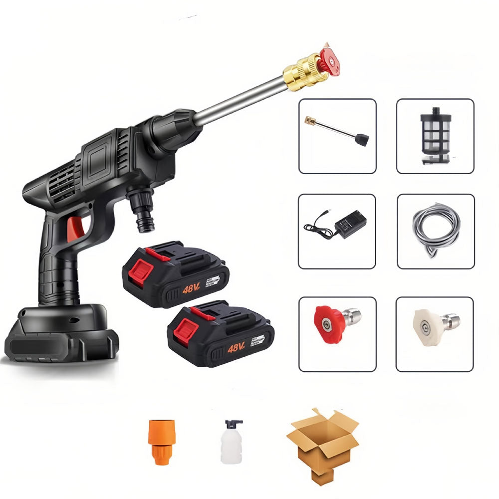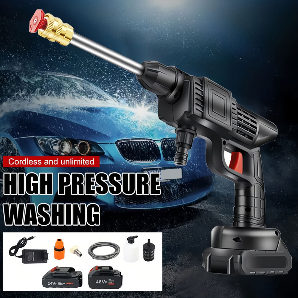 - Cordless Pressure Washer takes portability and convenience into consideration, there is no power cable anymore, High-Capacity Battery Operated, allowing you to cleanall your outdoor spaces and gear, anytime, anywhere all your outdoor spaces and gear, anytime, anywhere.