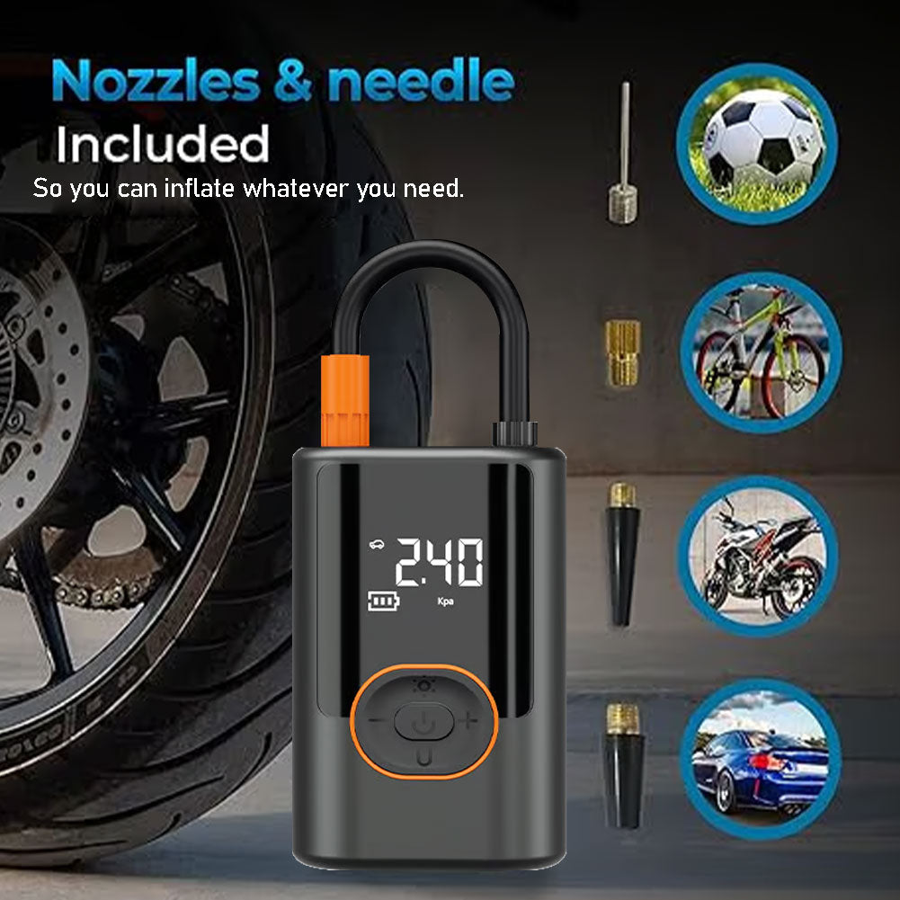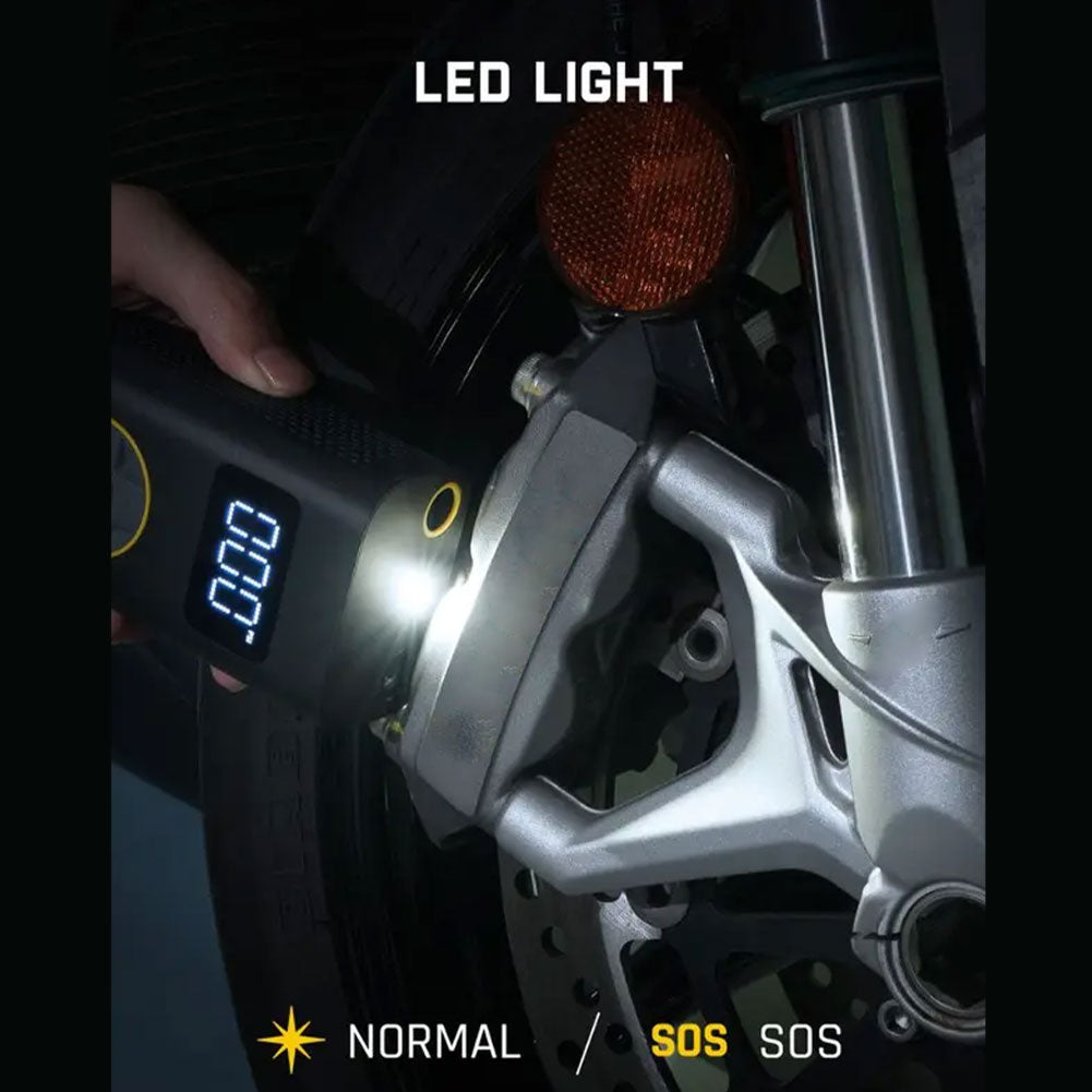 - Air Pump with Tire Pressure Gauge: The Portable air Compressor features a built-in tire pressure gauge that allows you to monitor the pressure level of your tires and adjust it as needed.