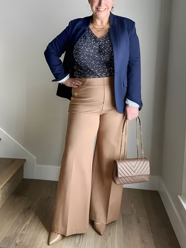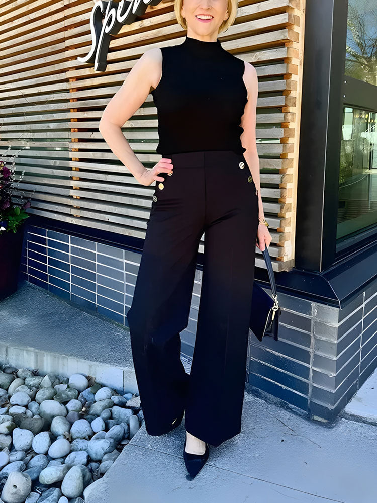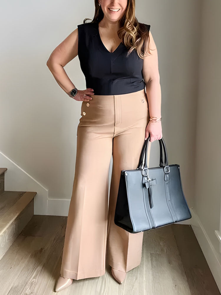 - 1/2/3 x Tummy Control Button Wide Leg Pant