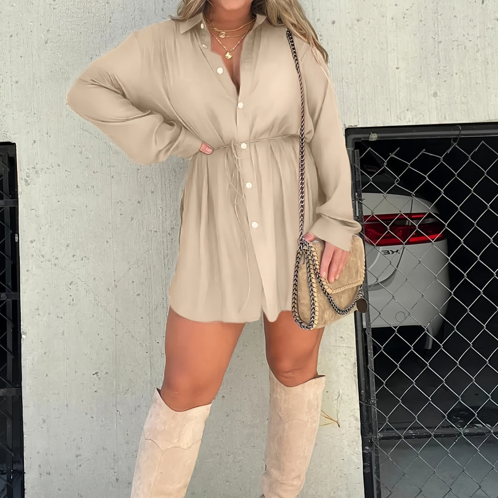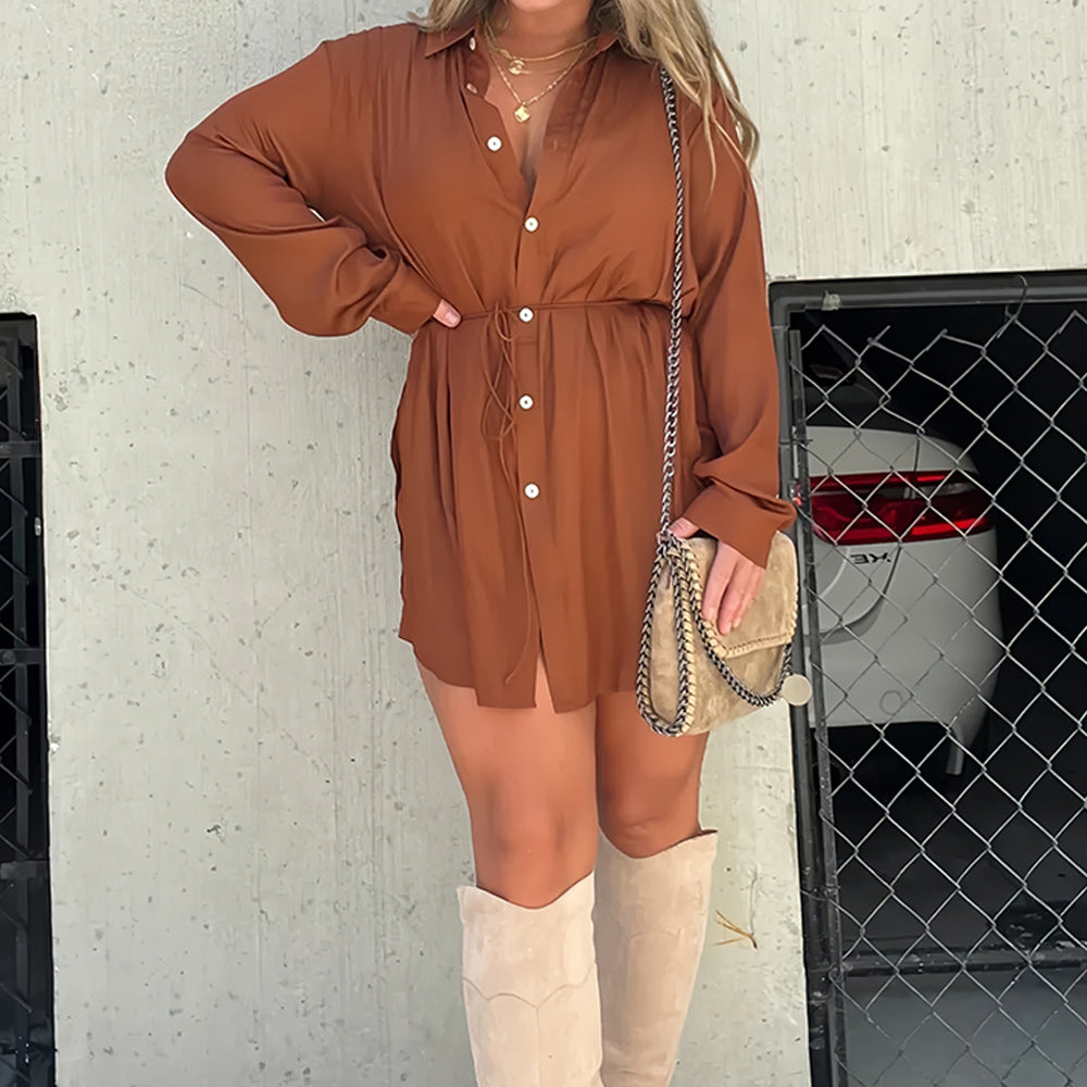 Solid color satin bodysuit with neckline and tie. Wear it open as a layering piece or closed as a dress! Super light fabric!