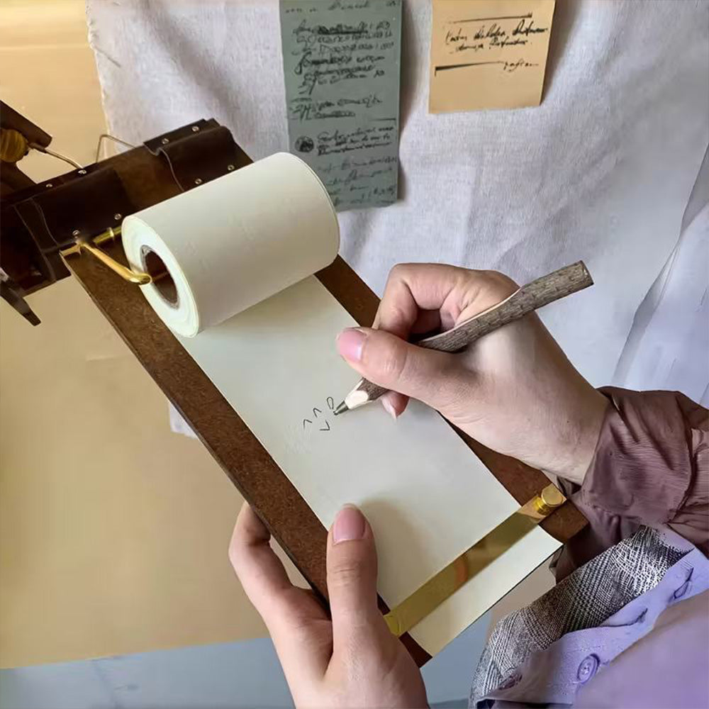 Vintage Rolling Pin Board with Bamboo Pen Holder - Artistic Tear-Off Sticky Notes